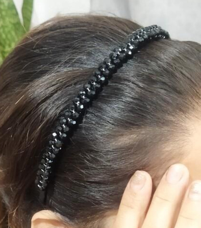 یه تل تک لاین که از کریستال مشکی در دو ردیف درسته شده. کار دسته و با سیم محکم شده. برای مراسمایی ک لباس مشکی داری و میخای با لباست ست باشه عالیه.