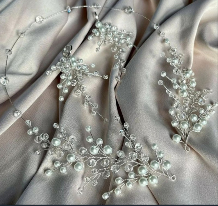 با نگین و کریستال ساخته شده.همونطور که میبینید دو طرفس و فوق العاده تو دلبروعه. با هر رنگ لباس ووشنیونی ست میشه😇